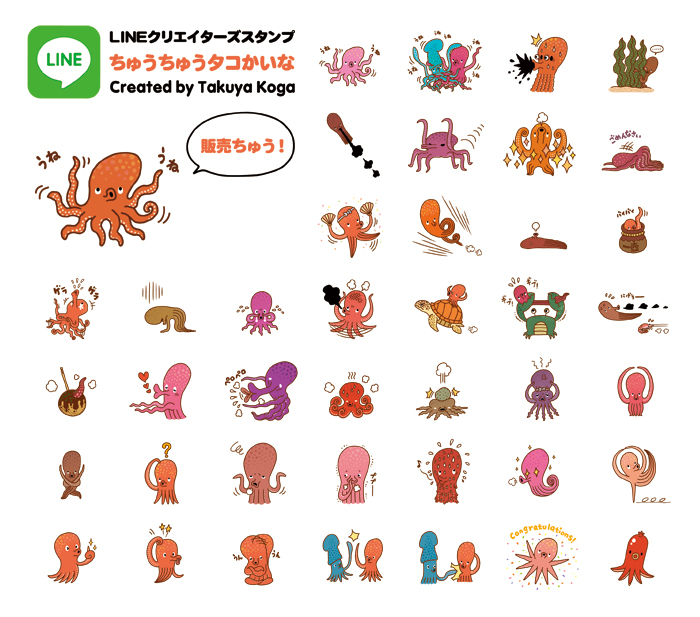 タコなりに考えて40変化してみたそうです。ユルくやわらかく代弁します。