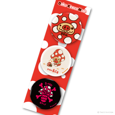 キャラクターのグッズ展開を想定し、「ドクキノコまっしゅ」のカレンダー、缶バッジセット、ポストカード6種を制作。