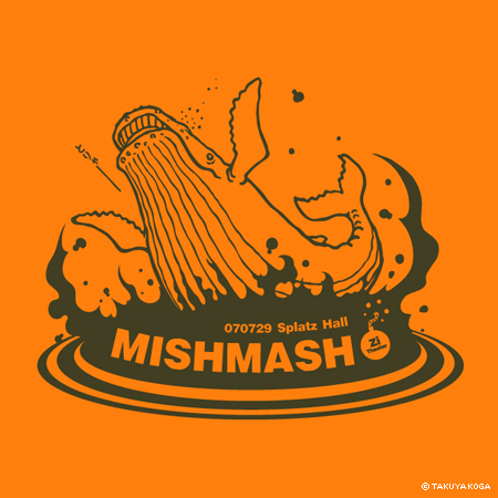 劇団「Ziシアター」の公演Tシャツ。クジラどっぱーん