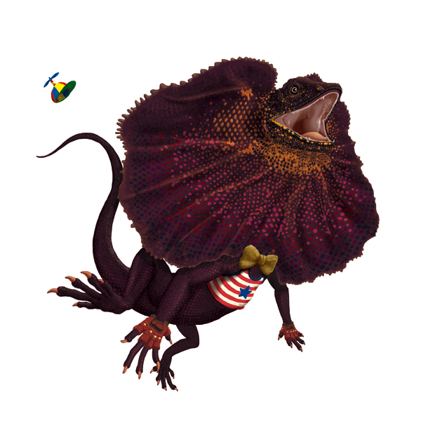 ’80年代の歌謡曲テイストてんこ盛りの楽曲に対し、’80年代に一時人気者となったエリマキトカゲを。 エリマキのカラーリングが気に入っています。